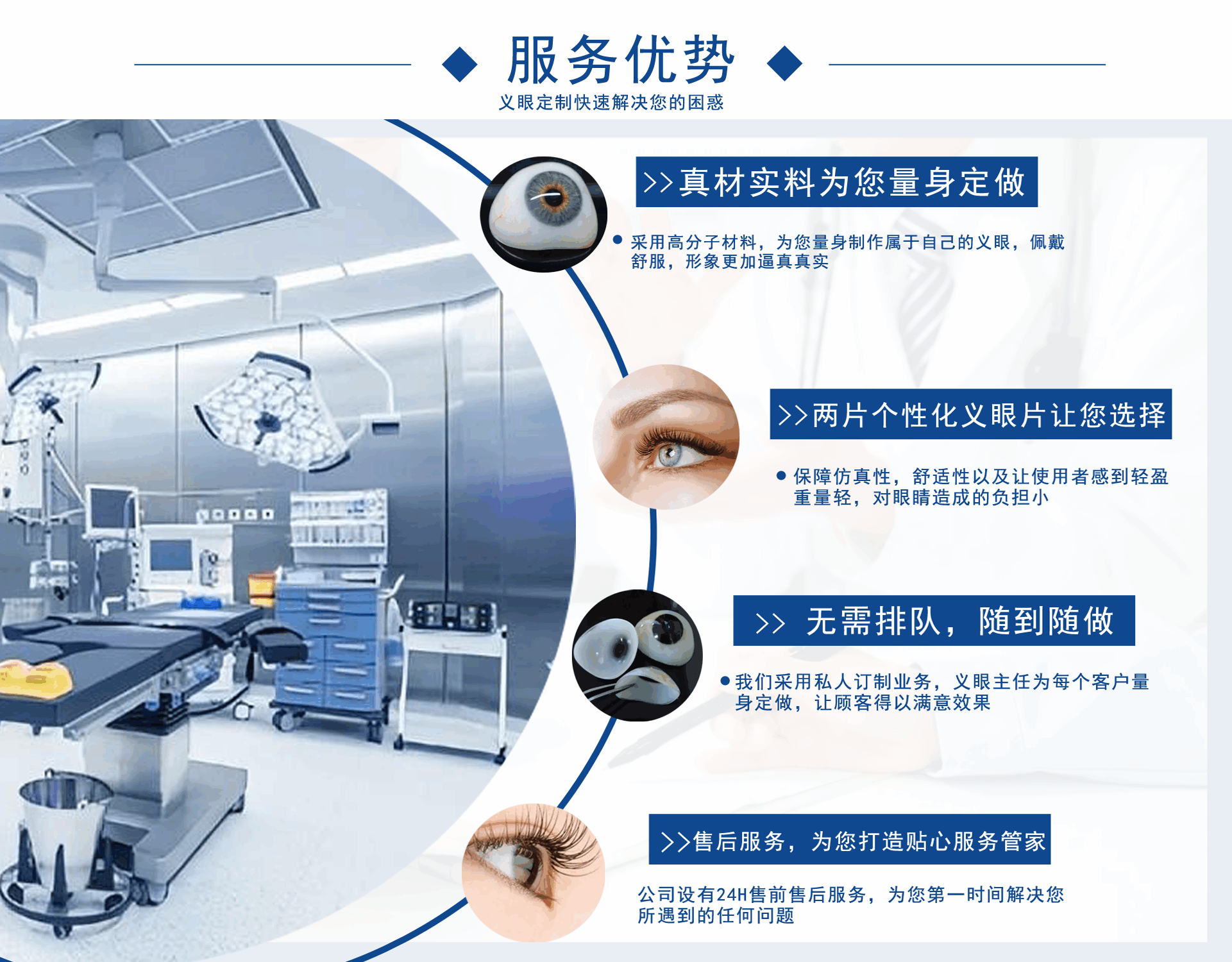 正目醫(yī)療科技有限公司致力于為用戶提供假眼,在哪里可以定制義眼,義眼哪家好,假眼價(jià)格,義眼價(jià)格,義眼費(fèi)用,義眼公司,是集義眼定制、保養(yǎng)、咨詢?yōu)橐惑w的綜合性義眼定制企業(yè)。  獨(dú)創(chuàng)的義眼工藝結(jié)構(gòu),根據(jù)仿生物學(xué)原理,采用進(jìn)口醫(yī)用植入材料:高分子材料、無(wú)毒素、性能穩(wěn)定、堅(jiān)固耐用)、聚甲基丙乙烯阝-羥乙酯HEMA材料(軟性親水性材料),結(jié)合獨(dú)特的義眼個(gè)性化佩戴技術(shù),按佩戴者健眼的形態(tài)、角膜、虹膜、及瞳孔的大小、色澤、血管紋理和脂肪分布,設(shè)計(jì)制作。擁有超薄、質(zhì)輕、光滑、親水透氧、佩戴舒適和高逼真的特點(diǎn)。為保證佩戴效...
